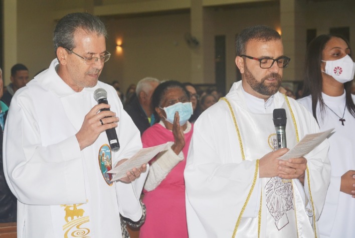 O oitavo dia da novena que prepara os paroquianos para a festa de seu padroeiro teve como tema “Diálogo, ponte para a sinodalidade”. A missa foi presidida pelo pároco da paróquia de São Sebastião em Coimbra, padre Luiz Martins Neiva, e concelebrada pelo pároco de São João Batista, padre Geraldo Martins.