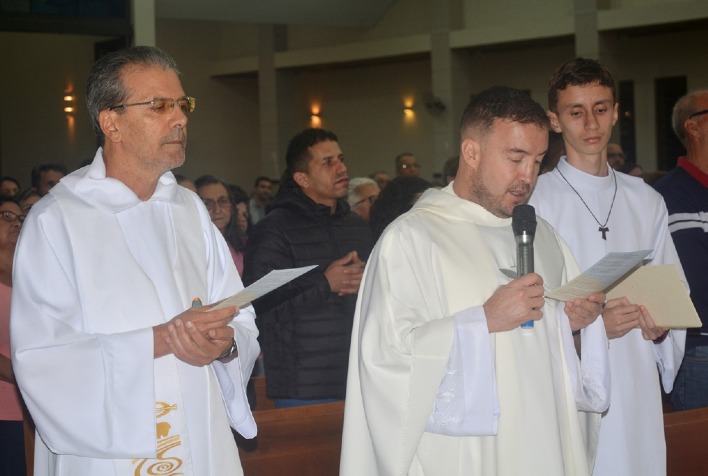 Padre Tiago da Silva Gomes, que atualmente é pároco na Paróquia N. Sra. da Saúde, em Dom Silvério, presidiu o...