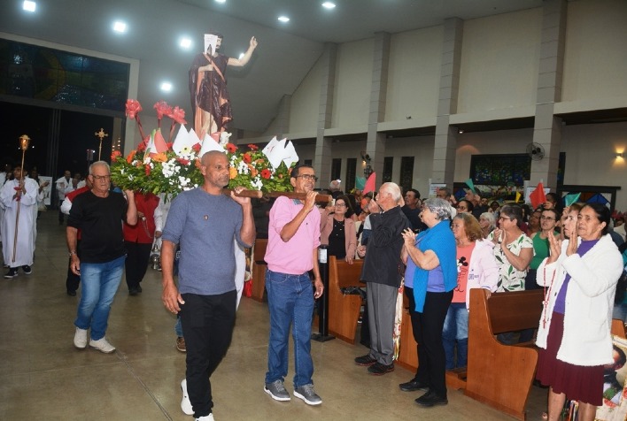 A festa de São João Batista, dia 24/06, se iniciou com missa às 7h e continuou à noite, com procissão...